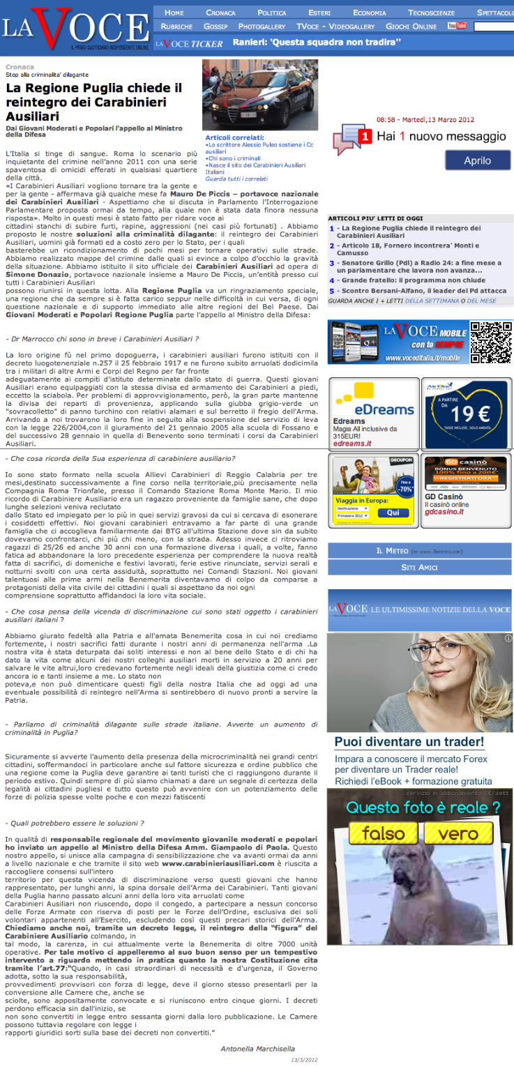 La Voce d’Italia 29-12-2011 Forzearmate.org 13-11-2011