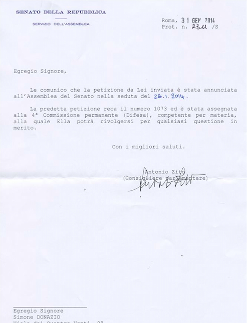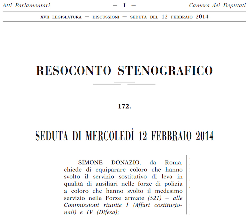 In Data 03-06-2014 è avvenuta la prima discussione del documento da noi redatto che ha portato il parere positivo del Sottosegretario di Stato alla Difesa, di seguito riportiamo il link della “Prima” discussione con il testo integrale della Petizione Presentata da questo Comitato: