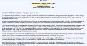 Successivamente in data 17/11/2011 l’uscente ministro della difesa Ignazio La Russa rispondeva alle interrogazioni parlamentari sopra postate :
